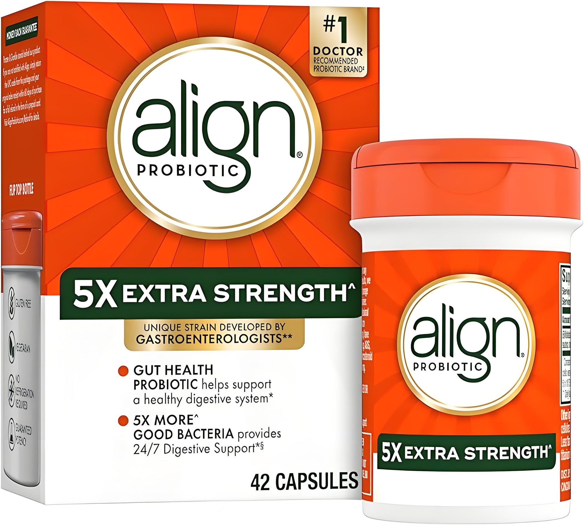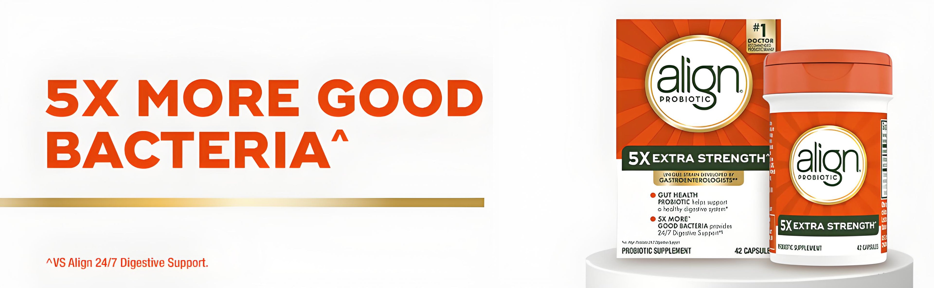 Just one capsule contains 5x the active CFUs vs. Align capsules; the pure-strain probiotic bacteria Bifidobacterium 35624 TM adds good bacteria to support digestive balance and helps promote normal bowel function.*