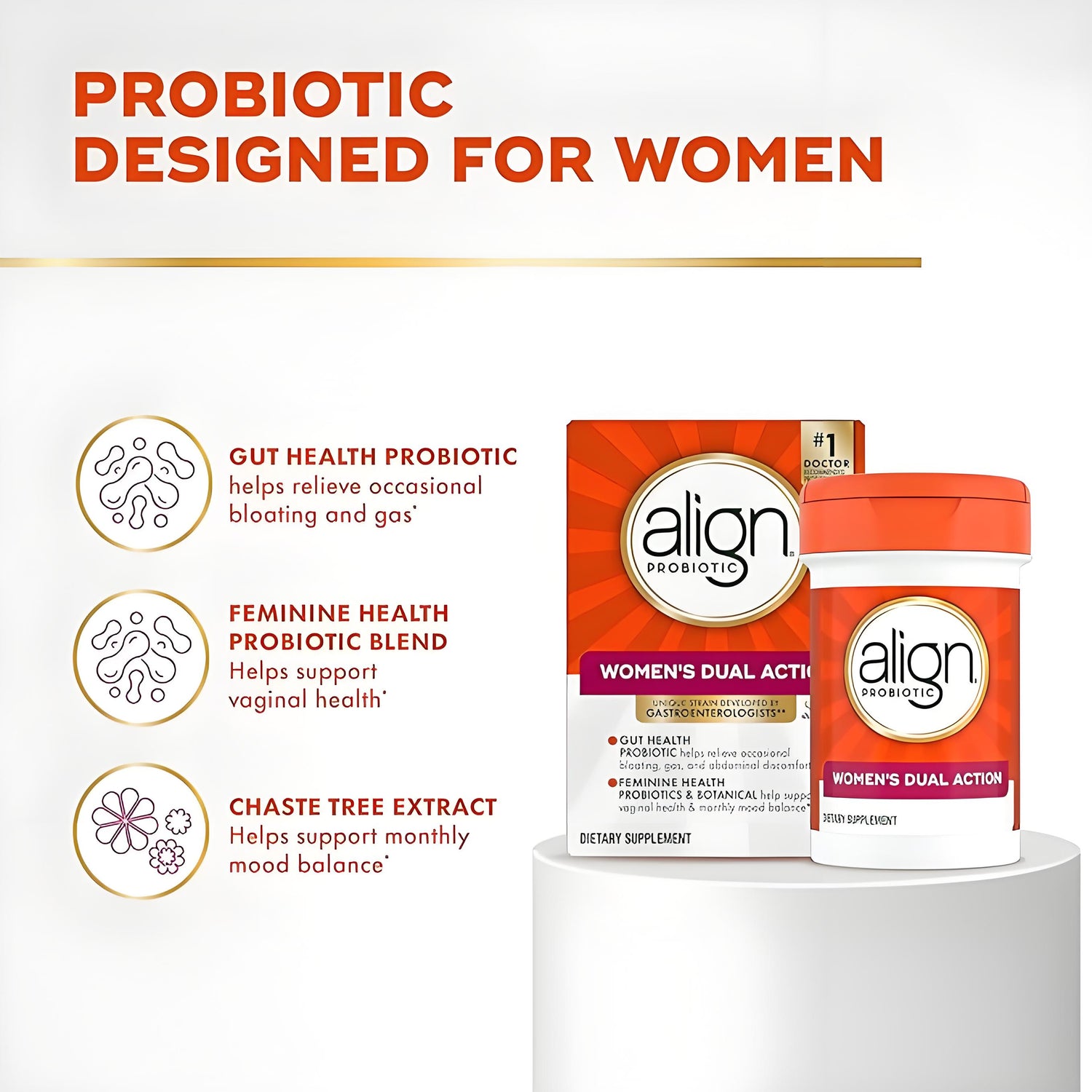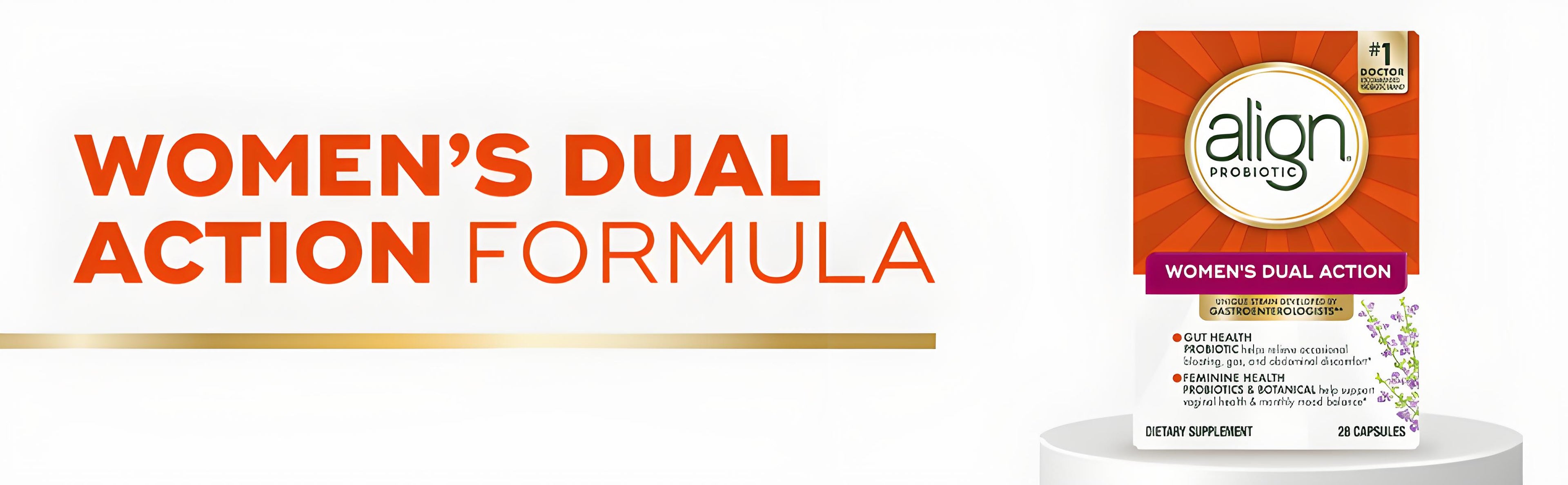 Align Women's Dual Action adds healthy bacteria to your gut to help relieve occasional digestive upsets and also includes feminine health probiotics to help support vaginal health*